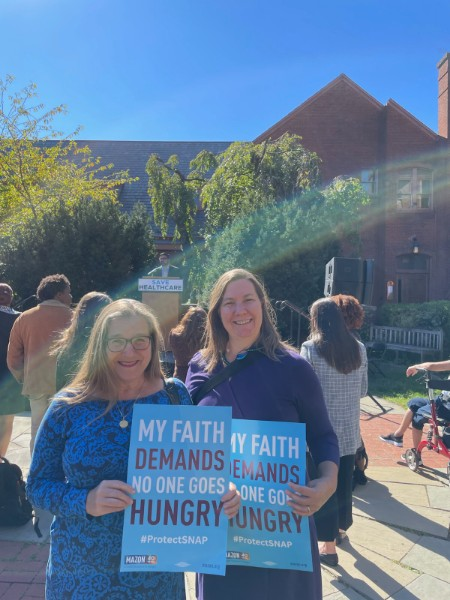 Speakers including Laura Peralta-Schulte of NETWORK Lobby for Catholic Social Justice and the Rev. Dr. Leslie Copland-Tune of the National Council of Churches welcomed prominent House members, including Minority Leader Hakeem Jeffries (D-NY), Speaker Emerita Nancy Pelosi (D-CA), Minority Whip Katherine Clark (D-MA), House Appropriations Committee Ranking Member Rosa DeLauro (D-CT) and several others, who voiced their determination to demand that a vote to end the shutdown include extension of the Affordable Care Act enhanced premium tax credit. They made the point that the need for action now is urgent, since open enrollment begins November 1 in nearly all states, and if people do not think they will have help to pay rising rates, they will drop out and become uninsured. If Congress fails to act, people losing the current enhanced premium tax credit will see their premiums double in most states.
